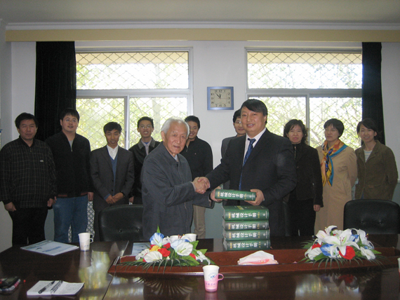 10月28日上午,在工程训练中心西配楼403会议室,一位精神矍铄的老人用他幽默的语言讲述着教书育人的道理,房间中不时传出阵阵爽朗的笑声。这位老人就是郭可谦教授,今年84岁。郭老长期以来一直关心着汽车工程系的发展,今天特意来捐赠图书,以示对“交通科学与工程学院”、“交通科学与工程研究院”成立的祝贺。郭老此次捐赠的图书为一套《机械设计手册》,共计5卷,价值598元。他将在日后陆续捐赠其他汽车相关专业的图书。