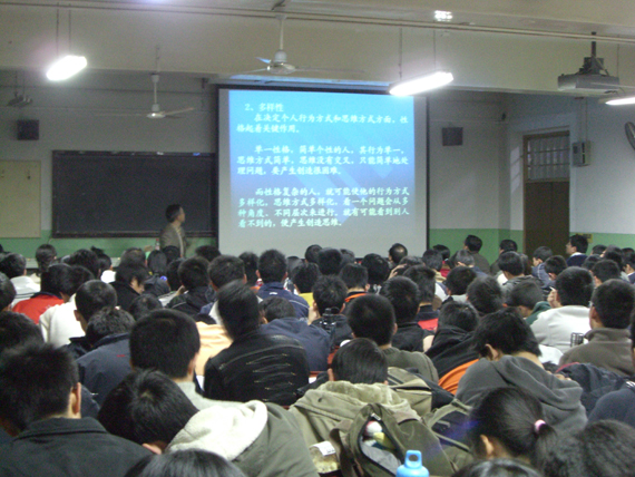 讲座一开始,刘馆长便用轻松幽默的话语谈到了讲座的主题。讲座分为复杂系统创造力规律、提高个人创造力的途径、将创造力转化为创造等三个方面。他用严密的逻辑推理和古今中外人物的事例为同学们具体讲述了提高个人创造力的方法。刘馆长列举的生动的事例让场上的气氛变得异常活跃,同学们不时对刘馆长精妙的话语报以热烈的掌声。最后,刘馆长希望同学们要脚踏实地的去工作学习,这样才有可能产生创造的火花。讲座在轻松的气氛中结束。