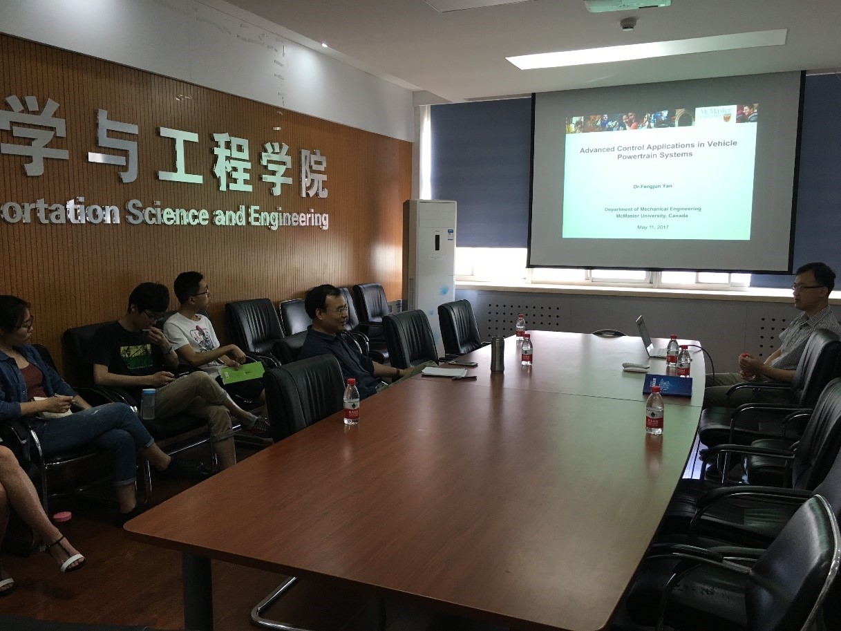 2017年5月12日和5月22日上午在北京亚洲成人在线一二三四五六区交通学院501会议室,应北航交通科学与工程学院刘献栋与张辉教授邀请,加拿大麦克马斯特大学闫凤军教授为我院师生做了题为“Advanced Control Applications in Vehicle Powertrain Systems”的主题系列讲座。