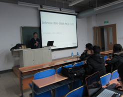 杨老师首先向参赛队员们详细介绍了英飞凌公司的发展历程以及英飞凌各个处理器的功能与应用,让同学们对即将使用的处理器有了更深入的了解。之后对嵌入式处理器的设计方法进行了更详细的分析与讲解,同学们都感觉受益匪浅、深受启发。
