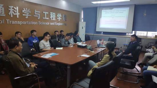 2018年10月15日,王旭教授在我院501会议室做了题为“Tire Cavity Resonance Noiseand Control(Part I)”的学术报告。王旭教授介绍了在汽车胎腔共振噪声的产生机理及相关研究,以及抑制噪声的方法和系统的策略。他还介绍了相关的理论研究和实验方案,内容丰富,深入浅出。报告内容结束后,王旭教授与现场师生进行互动交流,大家相互讨论,气氛热烈。