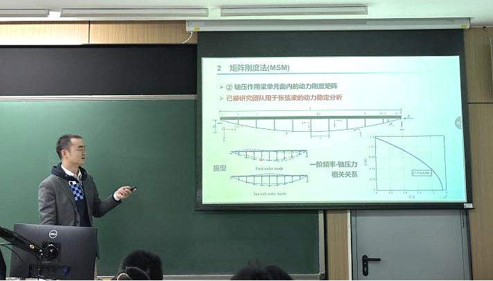 本期“北航交通知行讲堂”特邀嘉宾、浙江大学潘文豪教授发表了题为“杆系结构的精确矩阵分析及其应用”的学术报告。从矩阵刚度法的基本原理出发,系统介绍了面向梁柱构件、框架结构、空间拱结构的精确矩阵分析方法,并展示了相关成果在结构体系稳定和振动分析中的应用案例。