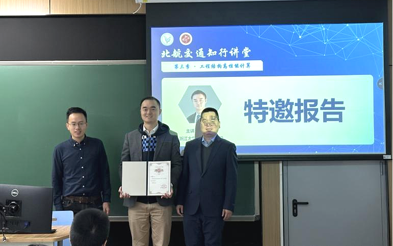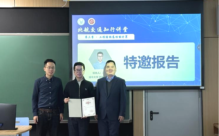 12月24日,由北京航空航天大学交通科学与工程学院主办的“北航交通知行讲堂”第三季第二期主题论坛成功举办。论坛邀请了来自清华大学、浙江大学的知名专家学者,围绕“工程结构高性能计算”开展了系列专题学术报告,分享交通基础设施工程结构领域前沿进展,探讨现代交通基础设施智能化发展。交通学院副院长陈军教授等到场交流,来自全校各系的50余名师生参与了本次活动,活动由智能交通基础设施系主任许立言主持。