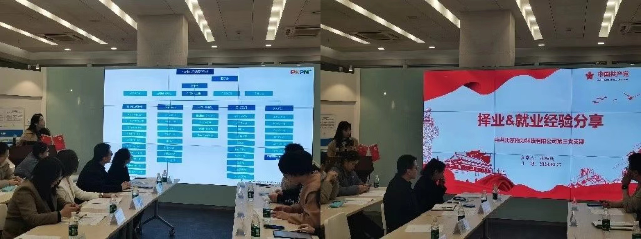 紧接着,构力科技刘婷婷、李雨泽、赖宗睿和张福瑶四位优秀员工为各位同学进行了择业、就业经验分享,并详细解答了支部成员关于未来规划与发展的相关问题。