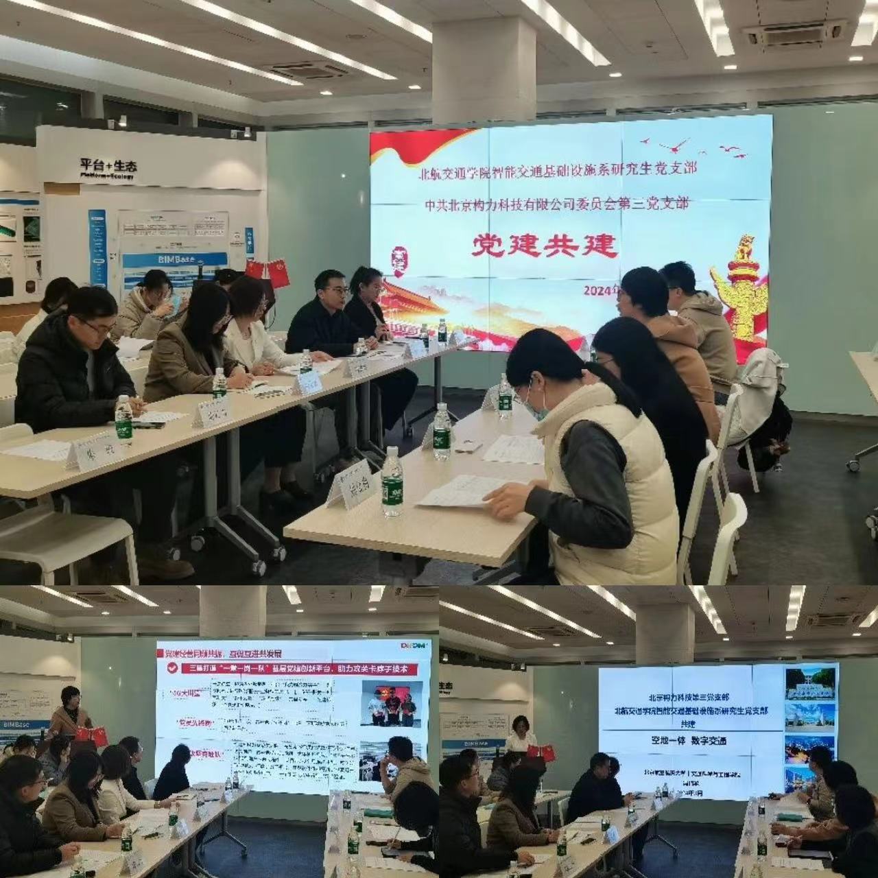 为深化党建引领、加强校企合作、共促产学研协同育人,2024年3月27日上午,交通学院智能交通基础设施系研究生党支部前往中国建研院北京构力科技有限公司,与北京构力科技有限公司第三党支部召开支部联合共建大会,会议主题为“深化主题教育,共推科技发展”。交通学院智能交通基础设施系教工党支部书记冯锦艳老师、交通学院专职辅导员张荣荣老师及支部党员代表参会,会议由北京构力科技有限公司第三党支部书记刘苗苗主持。