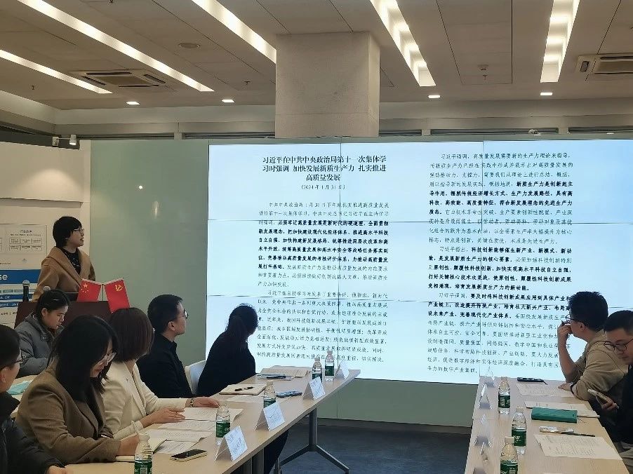 活动伊始,刘苗苗同志带领全体与会党员共学习近平总书记关于“新质生产力”的重要论述,从“新质生产力”的概念和战略意义出发,深入探讨了如何在当前时代背景下推动“新质生产力”的发展,以及如何将其融入到党建工作和实际生产中去。