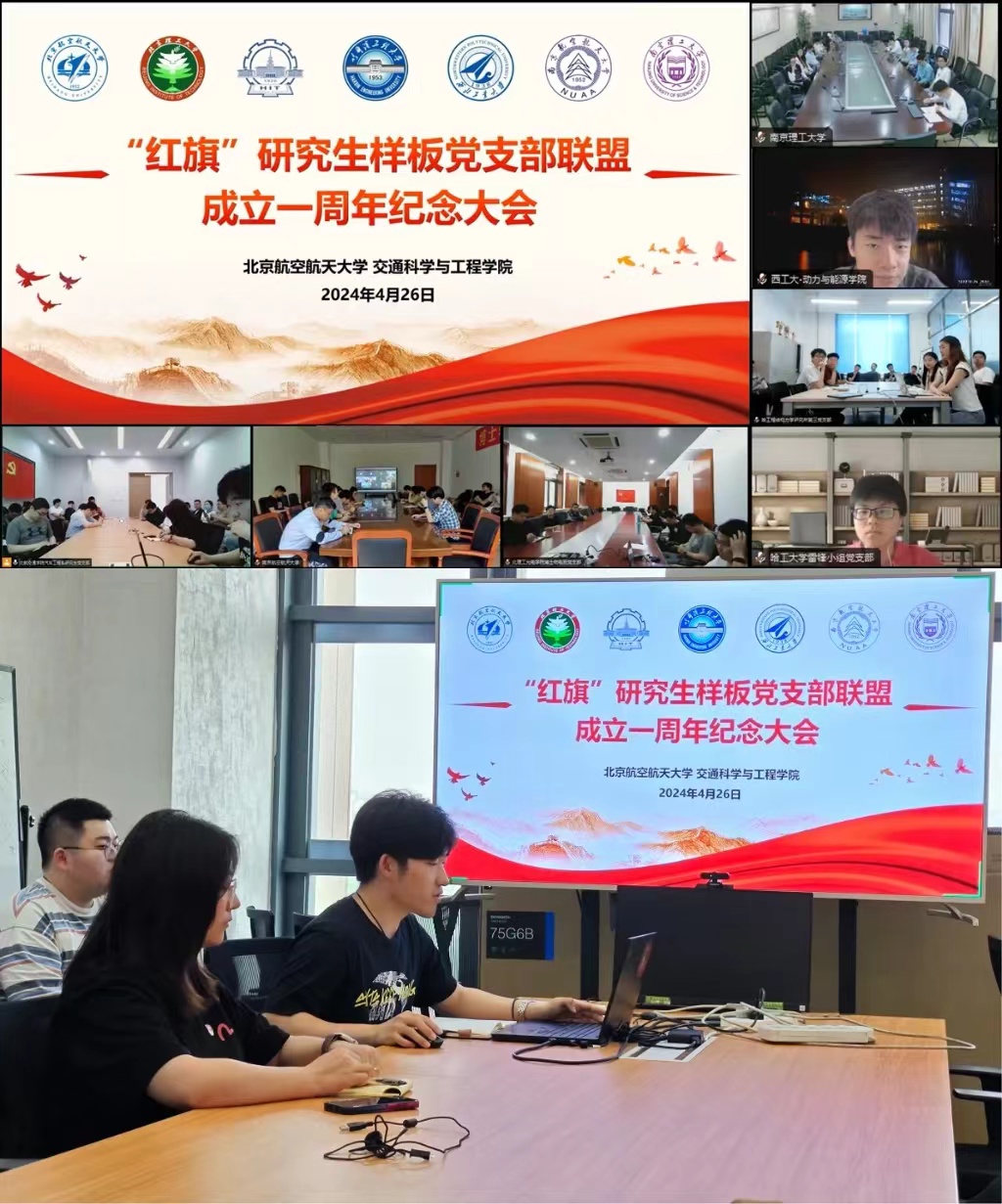 2024年4月26日下午,北航交通学院汽车工程系研究生党支部联合工信部属高校组建的“红旗”研究生样板党支部联盟成功举办了成立一周年纪念大会。北航交通学院专职辅导员张荣荣及“红旗”研究生样板党支部联盟全体党员参会。大会由北航交通学院汽车工程系研究生党支部书记张瀚凝主持。