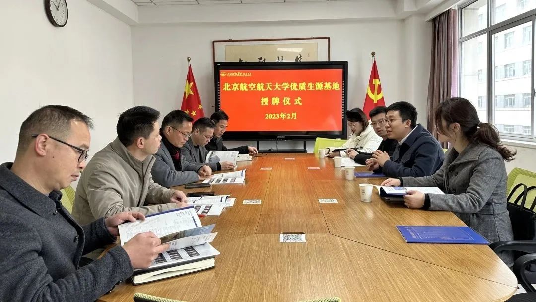 2月23日上午,招生组与江西科技学院附属中学校长、教导主任、高三年级组长等进行了深入的座谈交流。郭祖博从北航概况、办学特色、师资队伍、学科建设等方面全面介绍了学校综合实力,并简要介绍了北航知名江西校友以及我校近年来在江西省招生情况等。随后,双方围绕人才培养合作等议题展开深入讨论。座谈结束后,双方共同进行了“优质生源基地”授牌仪式。