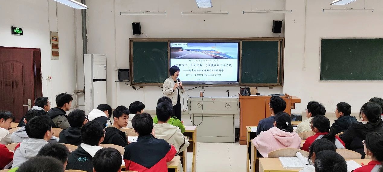 11月29日,招生组抵达江科附中,继续进行招生宣传与学术交流活动。苏文平教授为高二年级的学生们带来了以《把握当下,未来可期,力争赢在第三起跑线——高中生职业生涯规划与北航简介》为主题的讲座,讲座内容深入浅出,为学生们提供了科学的职业生涯规划路径,也激发了同学们对北航的兴趣。