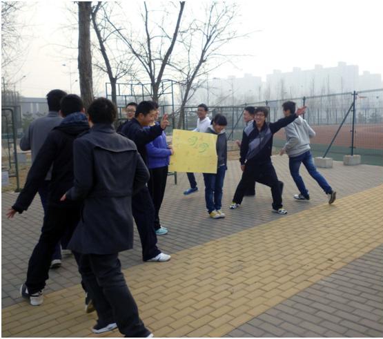 首先,在准备活动中,培训师让同学们先做“拍手”的活动,难度依次增大,主要是培养大家之间的默契。之后,培训师又让同学们做一个练习反应能力的小游戏—“警察抓小偷”,每当他说出“san”或“shan”的读音,同学们都要双手齐做动作,锻炼同学们的反应能力。破冰环节之后就是正式活动了,笑不拢嘴的同学们被分为两组,每组被要求选出队长,“大秘”和“小秘”,然后是制作队标、队训和队歌,小组中的每个队员都积极参加,踊跃的提出自己的意见。大约半小时后,两小组的比赛正式开始,最终“呵呵”队凭借高昂的士气和整齐划一的节奏击败“超神”队,夺得头筹。很快,本次活动就到了最后一个环节,在此环节中,队员们被要求从一个一米多高的平台上朝后摔下,由下面的同学肩并肩接住。此环节考验了同学们的胆量与配合默契程度。最后,在恋恋不舍中,同学们与培训师告别。