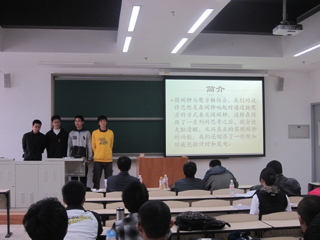 开幕式后,参赛同学分为两个会场同时竞技。有的组将闹钟和魔方联系起来,使闹钟发挥更加完善的作用;有盲人辅助的相关系统,帮助盲人顺利通过道路,避免盲人丢失;有的团队对农村建筑结构进行优化以充分利用太阳能;有的用传感器测量车速并实现“交通灯改造”;“城市模块化”所传达的新建筑理念、“多功能电池”的丰富功能和价值、“光纤输电”的高效低成本、低视力人群制导及环境探测系统的成熟技术支持和高可行性,均使人耳目一新。还有多项有关交通运输工具的新型发明创造以及对日常生活用品的新型改造创新,不断成为赛场中的亮点,不时引起观众的热议和赞许。
