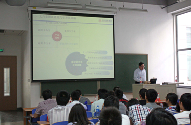 随后,学院兼职教授、博士生导师,北汽集团副总工程师、北京汽车新能源汽车有限公司执行董事林逸教授做了题为“电动汽车发展”的首场专家报告。林逸教授是国内汽车技术领域的知名专家,近年来在新能源汽车技术上有着卓著的贡献和丰硕的研究成果。报告中,林教授针对电动车发展历史,国际、国内电动车发展现状、北汽新能源汽车发展规划以及北汽新能源汽车经验向同学们做了详细的介绍,使同学对十一五甚至十二五期间我国新能源汽车的发展战略、发展趋势及其重要性都有了更为全面和深刻的认识。