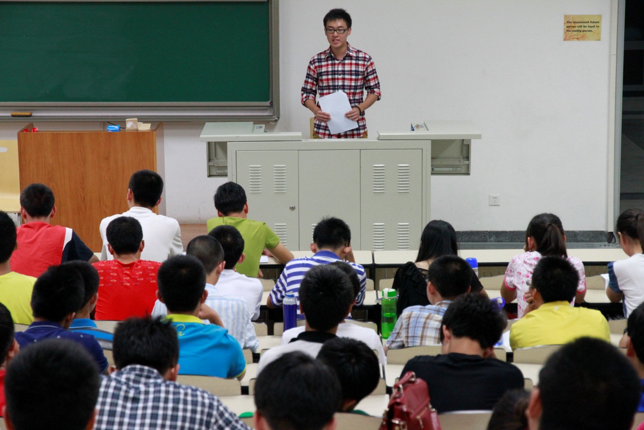 大班会以点名开始,从同学们洪亮的嗓音和略带稚气的笑容可以明显感受到他们的自信、阳光以及对大学生活的满心期待。2012级辅导员邱健老师首先开始了跟同学们的交流。他具体介绍了学生工作办公室的职能和教师组成。接着以生动的实例和几组鲜明对比让同学们对大学所需要完成的历练有了大致了解,并提醒大家合理规划大学生活。辅导员的风趣与睿智给同学们留下深刻的印象。