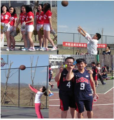 2013年4月13日星期六下午两点,在中财沙河校区的篮球场上进行了北航交通学院与中财会计学院的篮球友谊赛,分别有男篮对抗赛,女篮对抗赛,技巧挑战赛,三分球大赛等部分组成。中场休息时中财的美女拉拉队献上了精彩的表演,活跃了现场气氛。