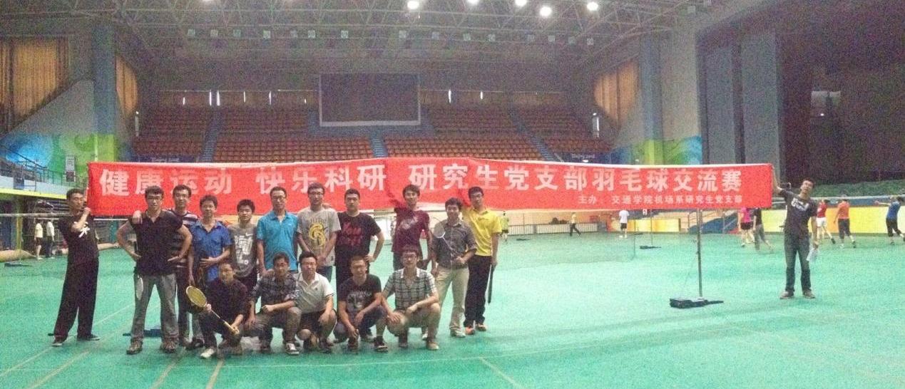2013年5月28日中午12点,北航交通科学与工程学院各研究生党支部代表在北航羽毛球馆举行了一场精彩的交流赛。本次活动由机场系研究生党支部筹办、SY12132支部协办,是“健康运动,快乐科研”主题系列的另一活动,本次比赛分为三场单打比赛,初赛根据报名人数分为6个小组,每小组3人进行循环赛,小组的第一名晋级下一场比赛。在第二场比赛中,初赛晋级的6名选手通过抽签方式划分为两组,每组3名选手,进行循环赛,每组第一名晋级决赛。每场比赛实行15分制。
