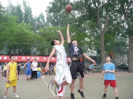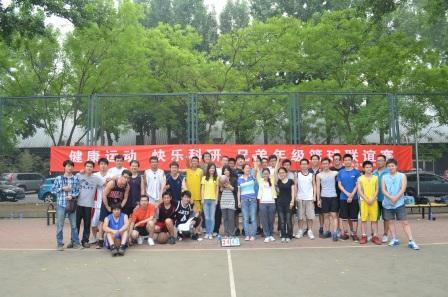 随着哨声响起,一次精彩的跳球开始,首届交通学院研究生党支部兄弟年级篮球联谊赛在北航篮球场正式拉开序幕。在裁判公正的哨声中,比赛激烈进行,双方比分不相上下,但随着双方运动员轮流替换策略的调整,上半场结束时二年级落后8分于一年级。随后,中场休息时间,两队派出的女队员开始投篮比赛,大家都不甘示弱,认真的神情、精准的投篮和花样的动作让整个比赛顿添更多欢笑和精彩。下半场开始后,二年级开始加强进攻,频频造成对方犯规,通过罚球将比分逼近,最后两分钟时,一年级仍领先7分,但剩余时间不多,在最后一声哨响起时,一记三分球将比分定格在了67:70,一年级队伍最终获胜。