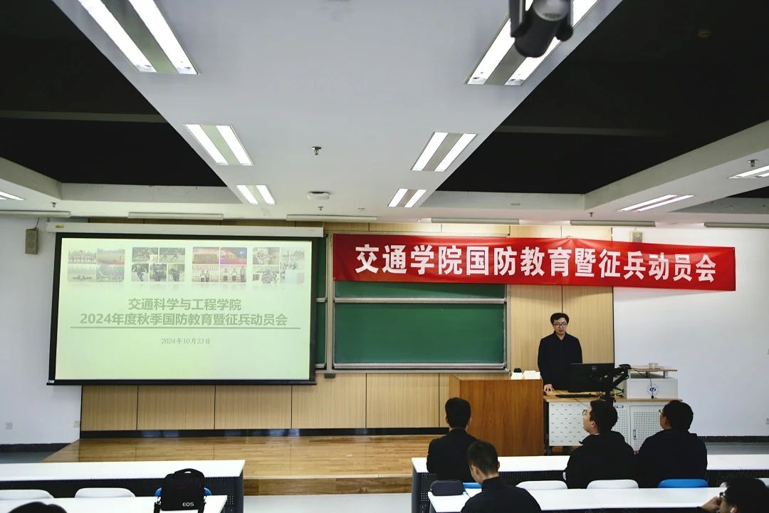 为积极响应国家大学生征兵入伍号召,切实做好秋季学期征兵动员工作,10月23日,交通学院组织召开了2024年秋季学期国防教育暨征兵动员会。交通学院党委副书记郭祖博,校党委武装部办公室主任邵英华,交通学院分团委书记张迎晨,退伍大学生代表刘家琪、王井旺,全体2023级及部分2021级、2022级本科生参会。会议由辅导员王现主持。