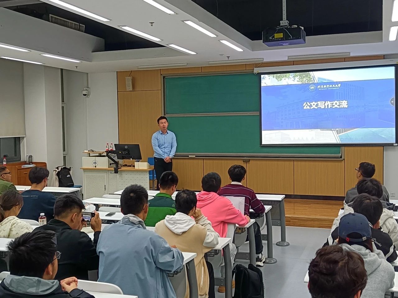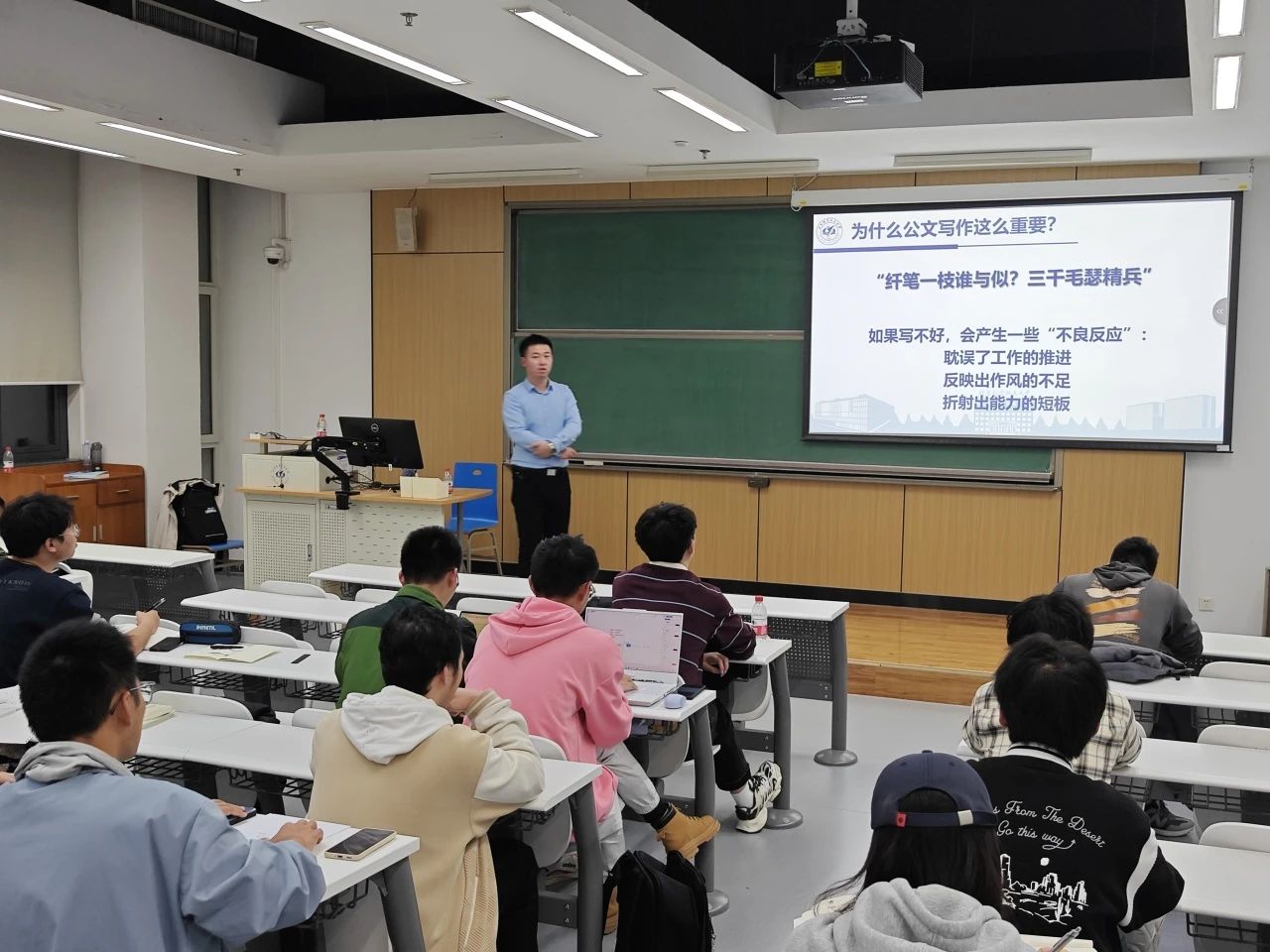 为深入贯彻落实习近平新时代中国特色社会主义思想和党的二十大精神,进一步提高学生骨干公文写作能力,10月30日,交通学院在沙河校区J3-201举办“赋能计划”专题培训第三讲,学生工作部胡天豪老师以“公文写作交流”为主题面向学生骨干开展专题培训。