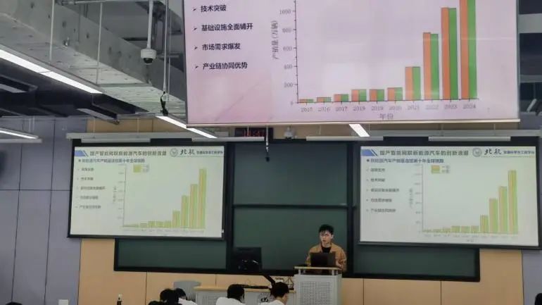 赵恺琦以政府工作报告中蕴含的青年元素引入,深入剖析了新时代赋予青年的发展机遇,激励同学们将个人理想与国家战略紧密结合;李伟聚焦新质生产力与科教兴国战略,结合商业航天、人工智能等前沿领域典型案例,解析国家科技教育战略布局;刘航以我国新能源汽车产业“跟跑”到“领跑”的跃升历程为主线,结合交通学院院史展现汽车强国建设中的北航力量;刘豆豆系统梳理两会报告关于科学普及工作的重要部署,分享交筑未来实践队科普经验,引导同学们以科学思维服务社会;迪拉然以“铸牢中华民族共同体意识”为主题,通过理论阐释和民族政策梳理,传递民族团结进步的时代强音。