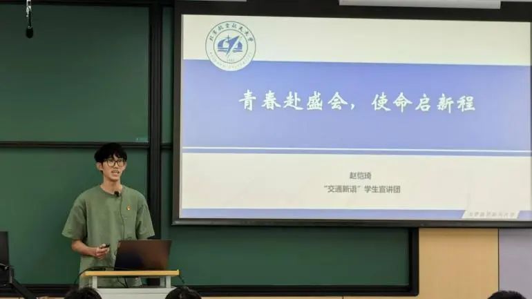 为深入学习贯彻2025年全国两会精神,引导青年学子把握时代脉搏、勇担时代使命,4月23日下午,交通学院“交通新语”宣讲团在沙河校区二号楼104开展2025年全国两会精神专题宣讲活动。5位学生讲师紧扣两会热词,通过政策解析与案例剖析,从青年担当、科技创新、汽车强国、科学普及、民族团结五个维度展开宣讲。