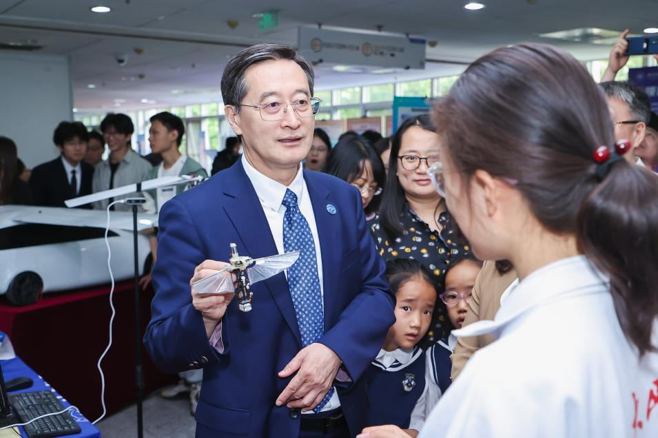 随后,王云鹏校长一行又来到受邀参展的中国人民大学附属中学“启航导师走进高中”展区,与启航导师代表、人大附中学子们展开深入交流。“仿生扑翼飞行器”是交通学院吴江浩教授团队在人大附中开设的科研课堂,旨在探索大中协同、贯通培养新路径。